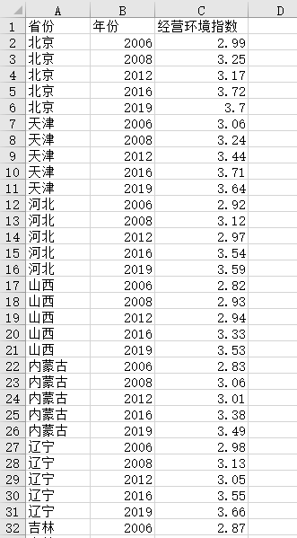 【数据】经营环境指数线性插值Stata代码过程(2006-2023)省面板数据计算