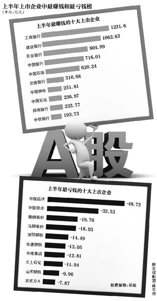 wind资讯数据显示,在2012年中报业绩中,工商银行等10家上市公司名列利润榜的前十位,上半年合计净利润总额达到5663亿元,同比增长8.12%。