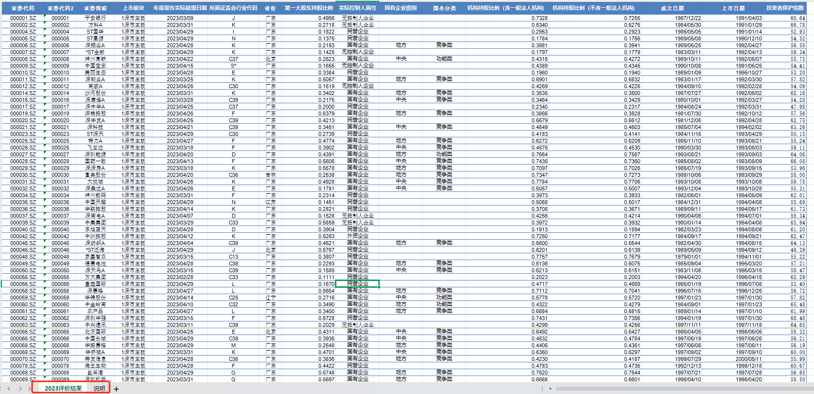 2010-2023年上市公司投资者保护指数excel面板数据