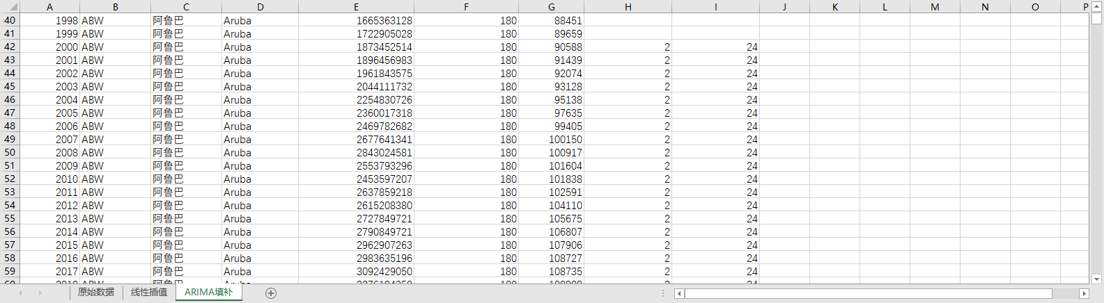 回归填补ARIMA填补。基于ARIMA模型,利用同一地区的时间序列数据,对缺失值进行预测填补。