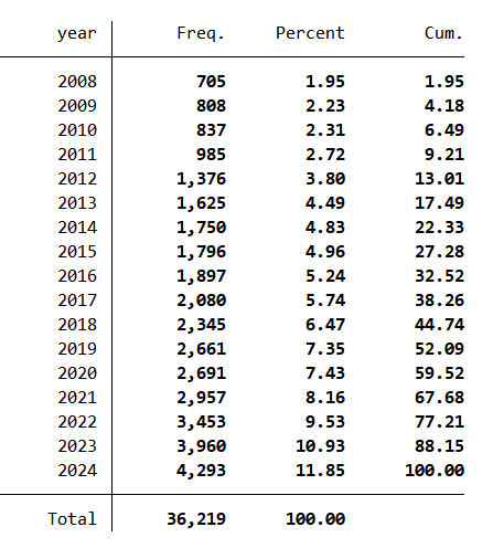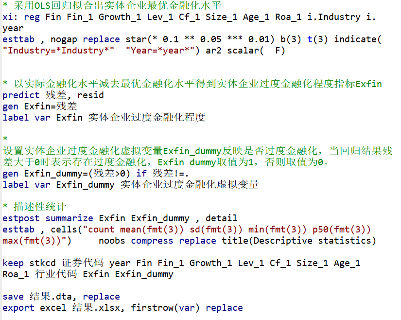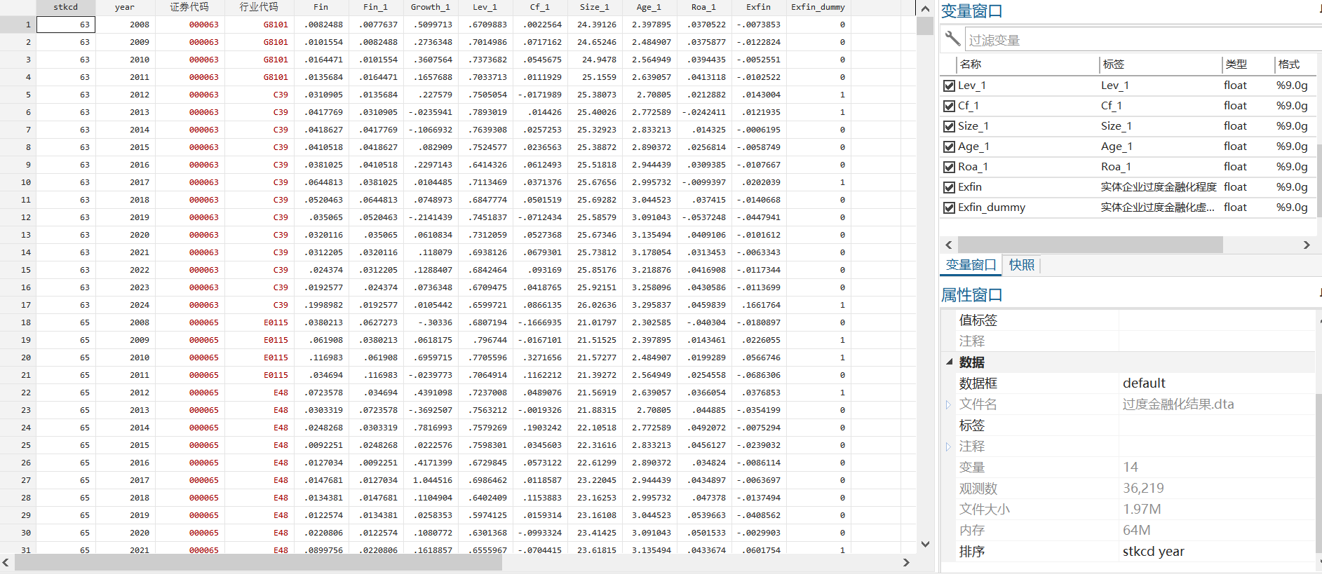 数据筛选:剔除本身金融化较强的金融和房地产行业样本,剔除ST、*ST后PT样本,剔除资产负z率大于1的样本,剔除缺失值,对连续变量进行缩尾处理