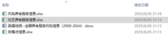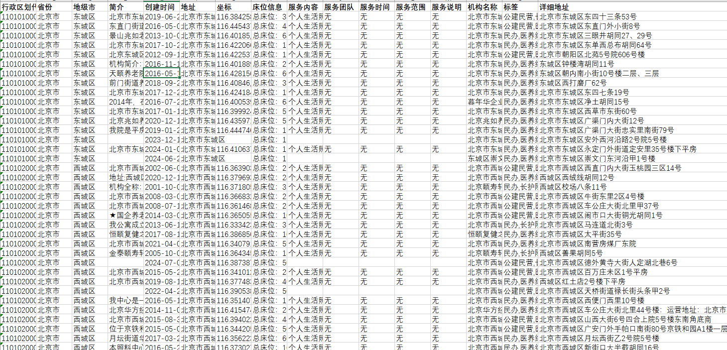 本数据基于python爬虫技术从全国养老服务信息平台抓取了社区养老、机构养老和助餐点的基本信息供大家研究使用。