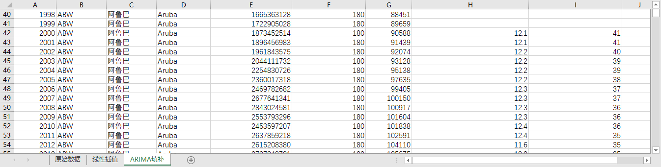 回归填补ARIMA填补。基于ARIMA模型,利用同一地区的时间序列数据,对缺失值进行预测填补。