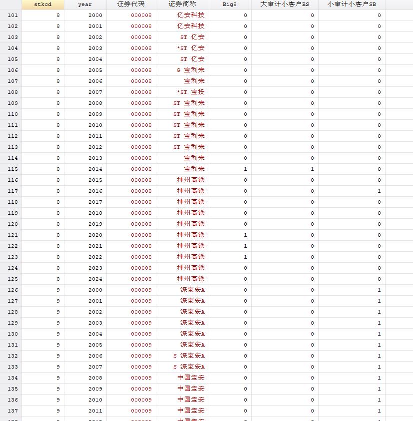 | 大所审计小客户 | BS | 八大事务所审计小规模客户,取值为1,否则为0 |