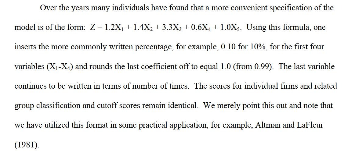 Altman, Edward I. (July 2000). Predicting Financial Distress of Companies. Stern.nyu.edu 15–22.