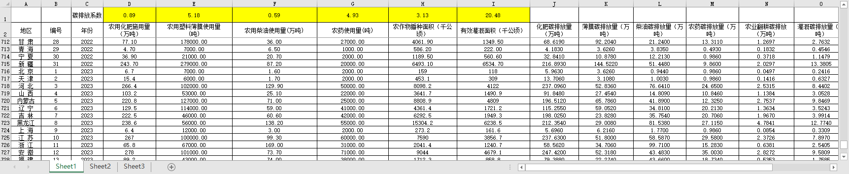 】【农业碳排放、省级数据】【2000-2023】【原始数据】【博士自用数据、发表了一篇北核】