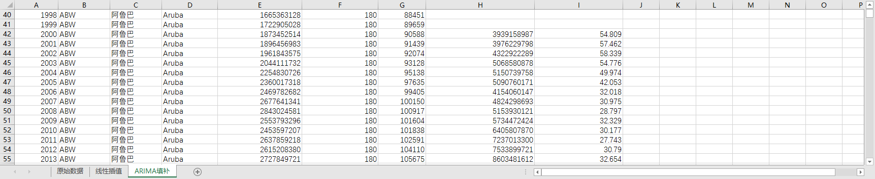 回归填补ARIMA填补。基于ARIMA模型,利用同一地区的时间序列数据,对缺失值进行预测填补。