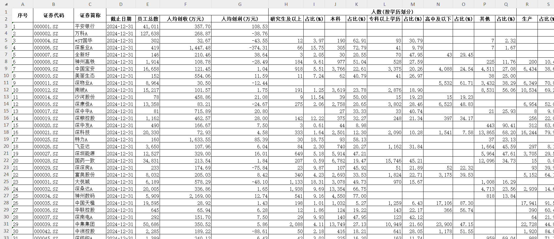 人数(按学历划分):研究生及以上 占比(%) 本科 占比(%) 专科以上学历 占比(%) 高中及以下 占比(%) 其他 占比(%)