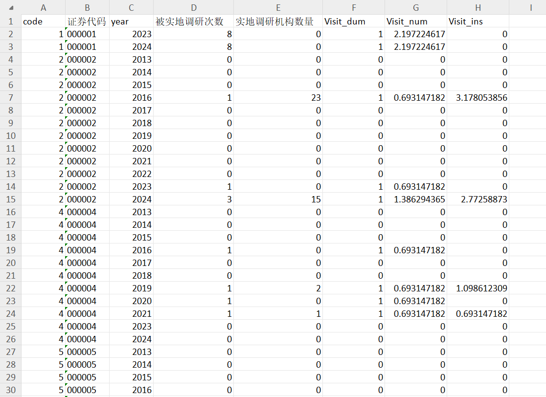 有无实地调研(Visit_dum):采用当年企业是否被实地调研设置虚拟变量