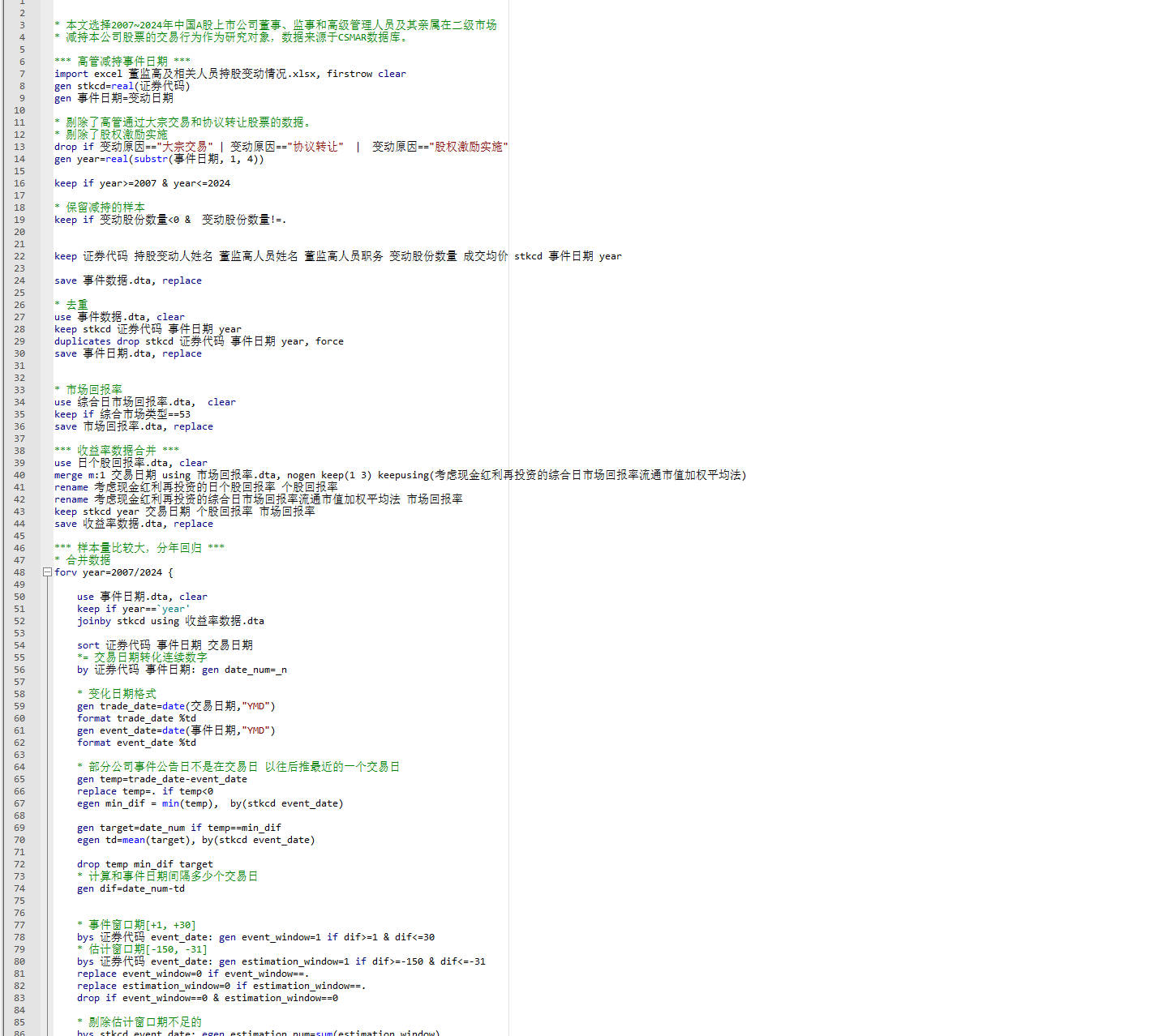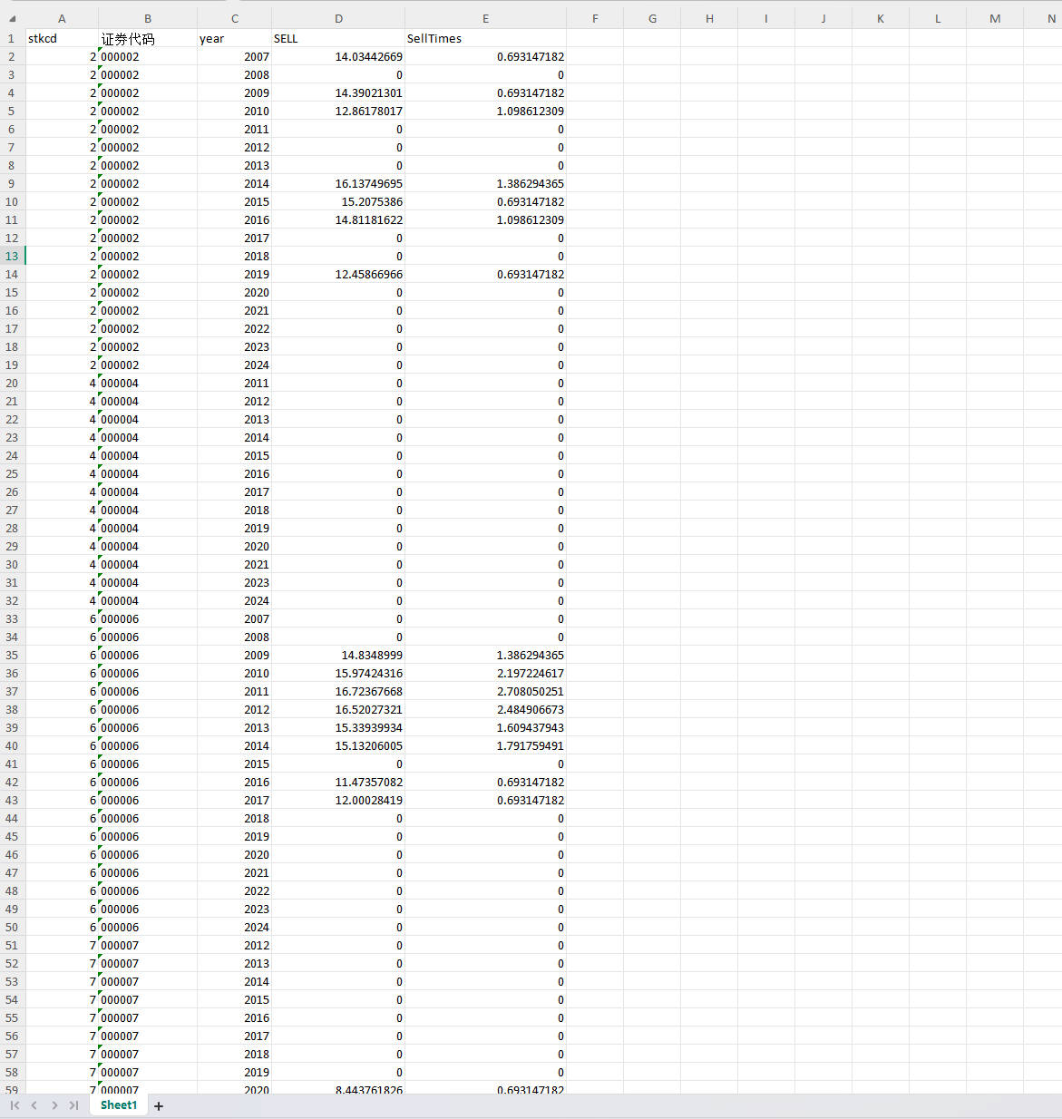 构建了机会主义减持金额和减持次数变量。具体地,将上市公司高管的每一笔机会主义减持交易在公司一年度层面进行汇总,计算合计的高管减持金额(SELL)以及合计的减持次数(SellTimes),并分别对其作对数处理。有原始数据、过程代码,剔除st金融和不剔两个版本。