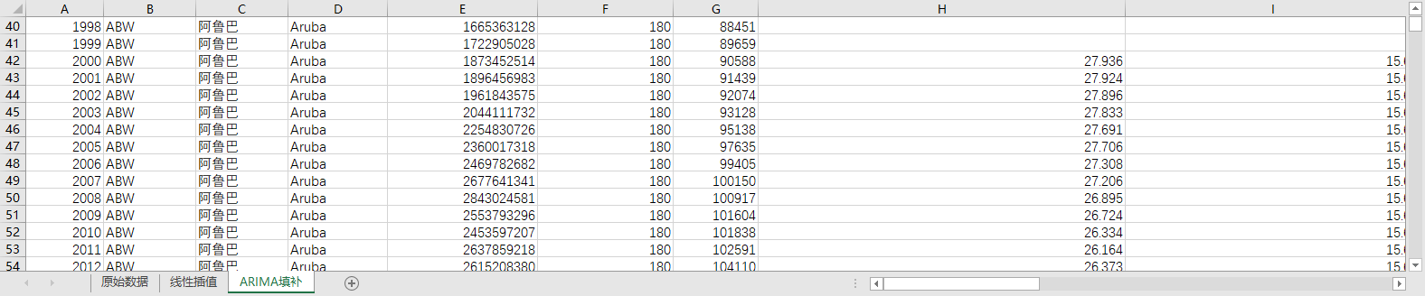 回归填补ARIMA填补。基于ARIMA模型,利用同一地区的时间序列数据,对缺失值进行预测填补。