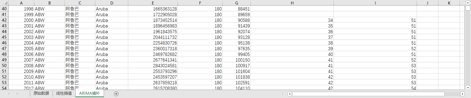 回归填补ARIMA填补。基于ARIMA模型,利用同一地区的时间序列数据,对缺失值进行预测填补。