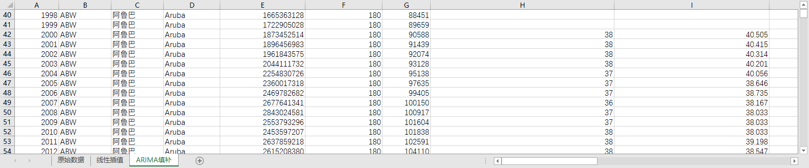 回归填补ARIMA填补。基于ARIMA模型,利用同一地区的时间序列数据,对缺失值进行预测填补。