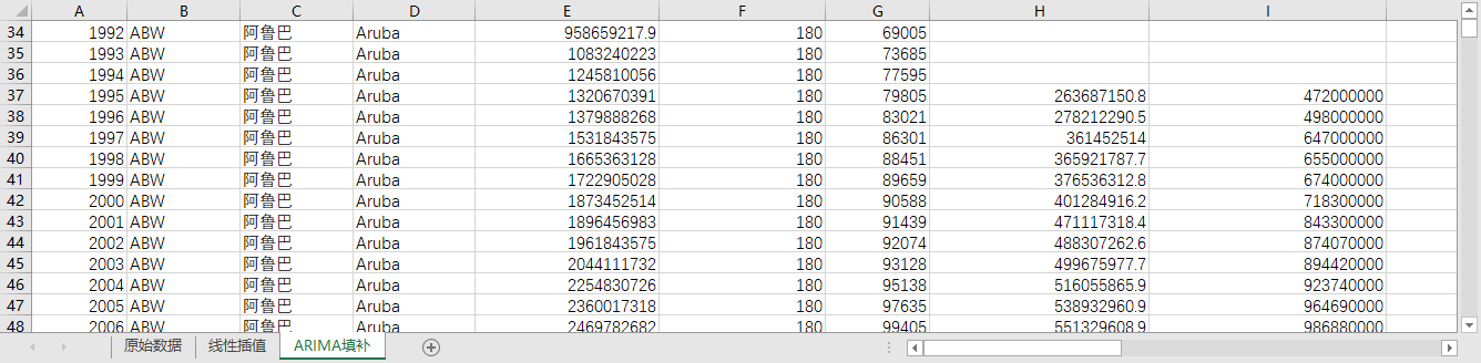 回归填补ARIMA填补。基于ARIMA模型,利用同一地区的时间序列数据,对缺失值进行预测填补。