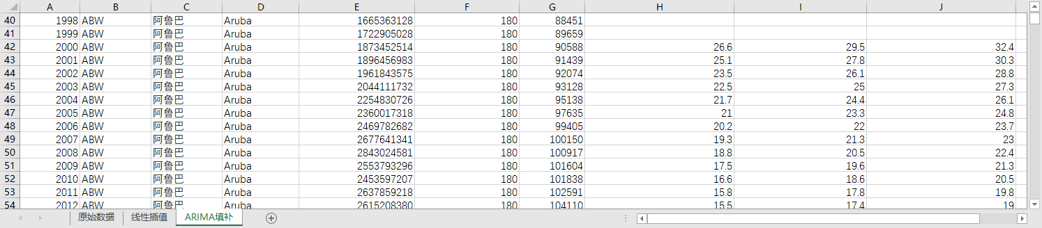 回归填补ARIMA填补。基于ARIMA模型,利用同一地区的时间序列数据,对缺失值进行预测填补。