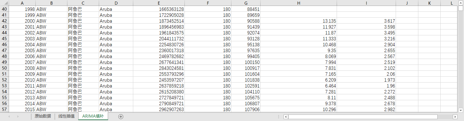 回归填补ARIMA填补。基于ARIMA模型,利用同一地区的时间序列数据,对缺失值进行预测填补。
