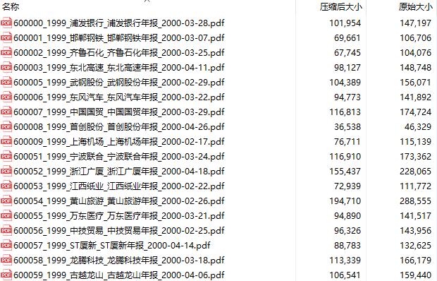 文件名称:对年报文件名称进行了统一命名,格式为“股票代码_年度_股票简称_****报告_发布日期”
