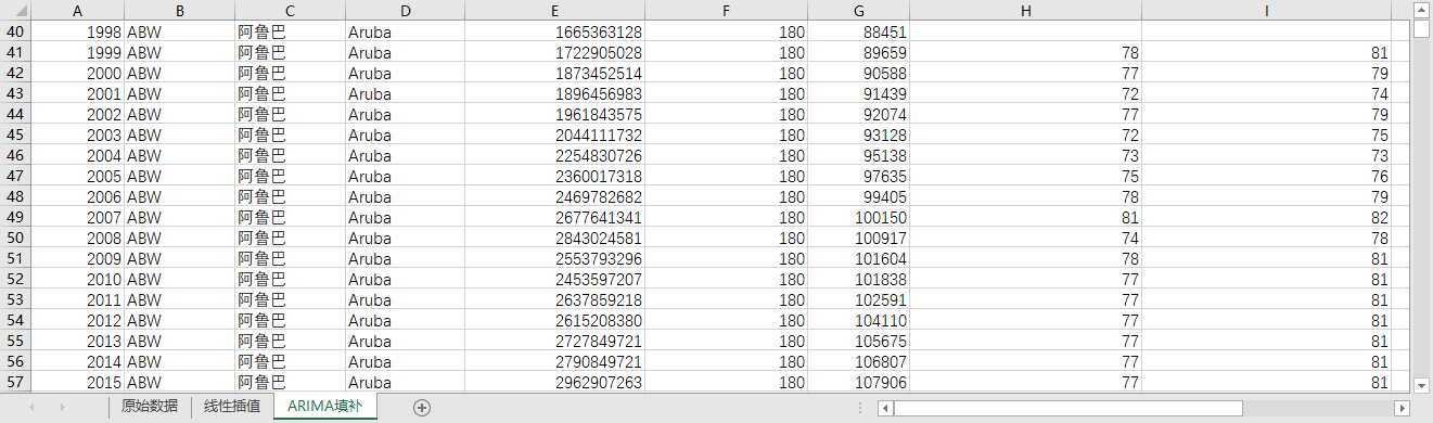 回归填补ARIMA填补。基于ARIMA模型,利用同一地区的时间序列数据,对缺失值进行预测填补。