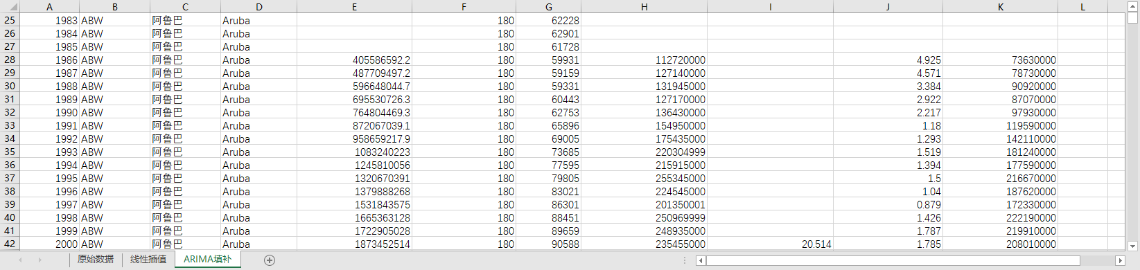 回归填补ARIMA填补。基于ARIMA模型,利用同一地区的时间序列数据,对缺失值进行预测填补。