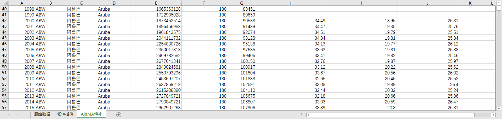 回归填补ARIMA填补。基于ARIMA模型,利用同一地区的时间序列数据,对缺失值进行预测填补。