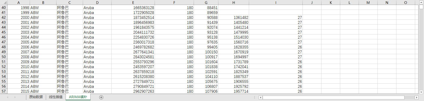回归填补ARIMA填补。基于ARIMA模型,利用同一地区的时间序列数据,对缺失值进行预测填补。