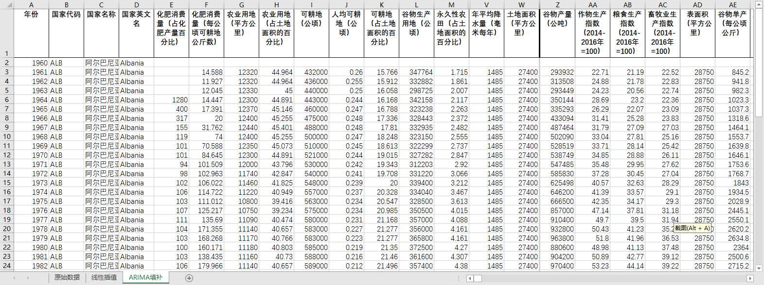 excel数据文件包原始数据(由于多年度指标不同存在缺失值)、线性插值、回归填补ARIMA填补三个版本,提供您参考使用。