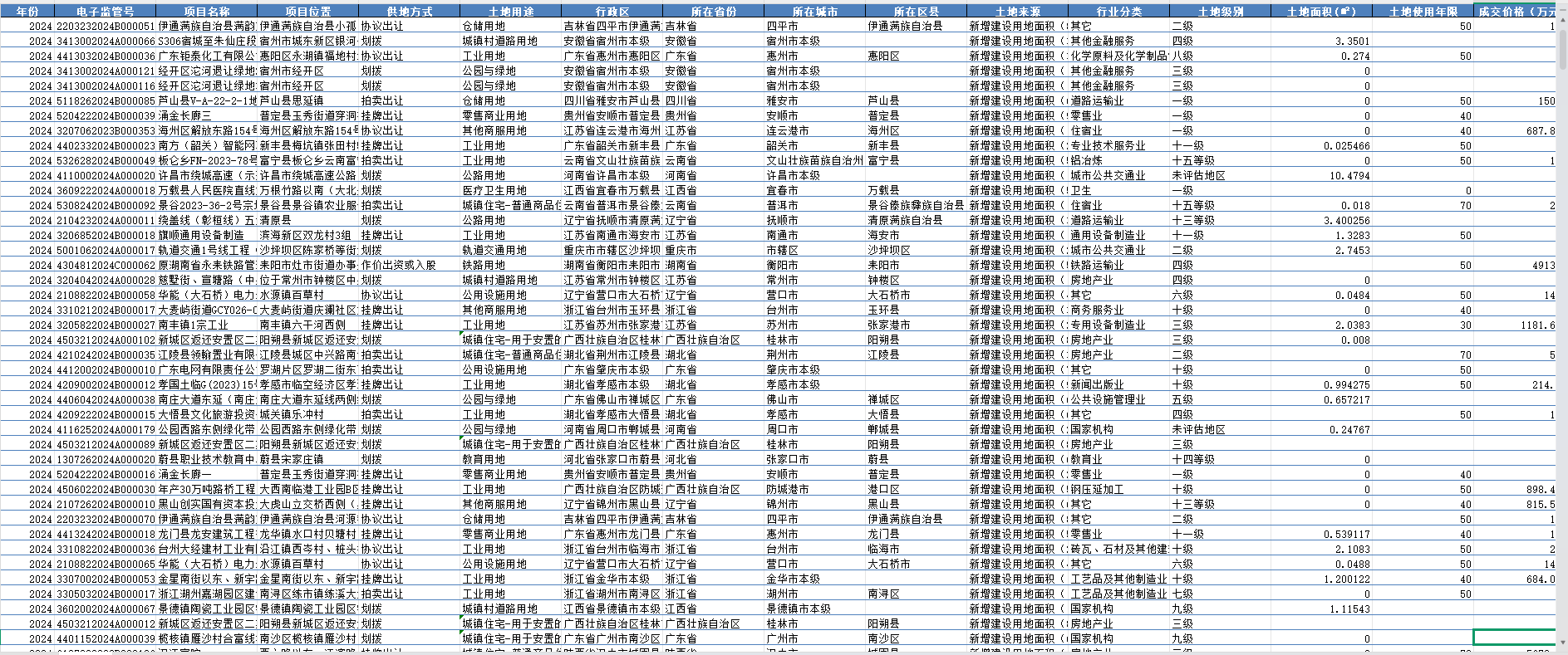2000-2024年中国土地出让详细信息面板数据-土地用途面积成交价格使用年限容积率等
