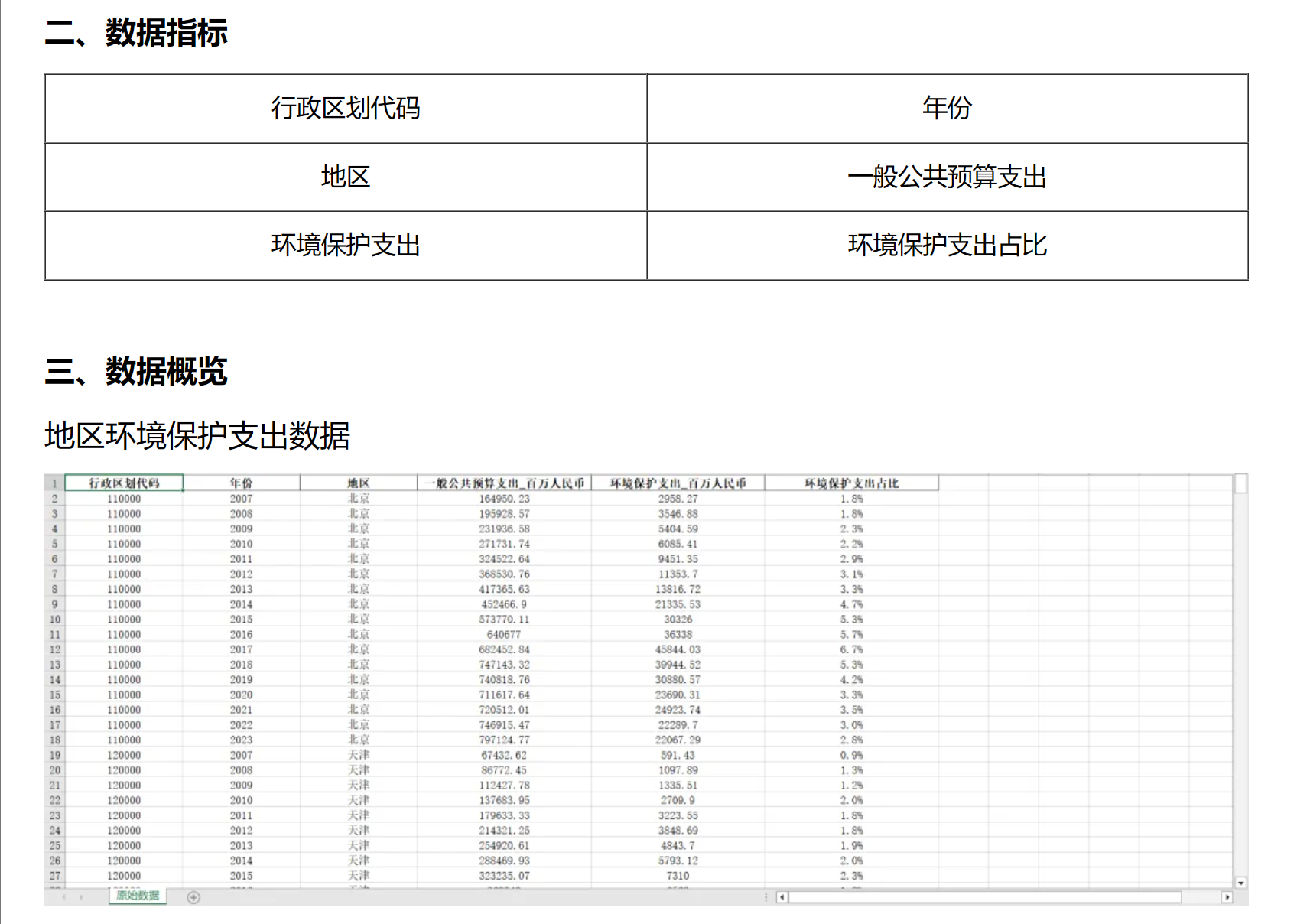 本次分享的数据为中国31个省份环境保护支出数据,范围为2007-2023年