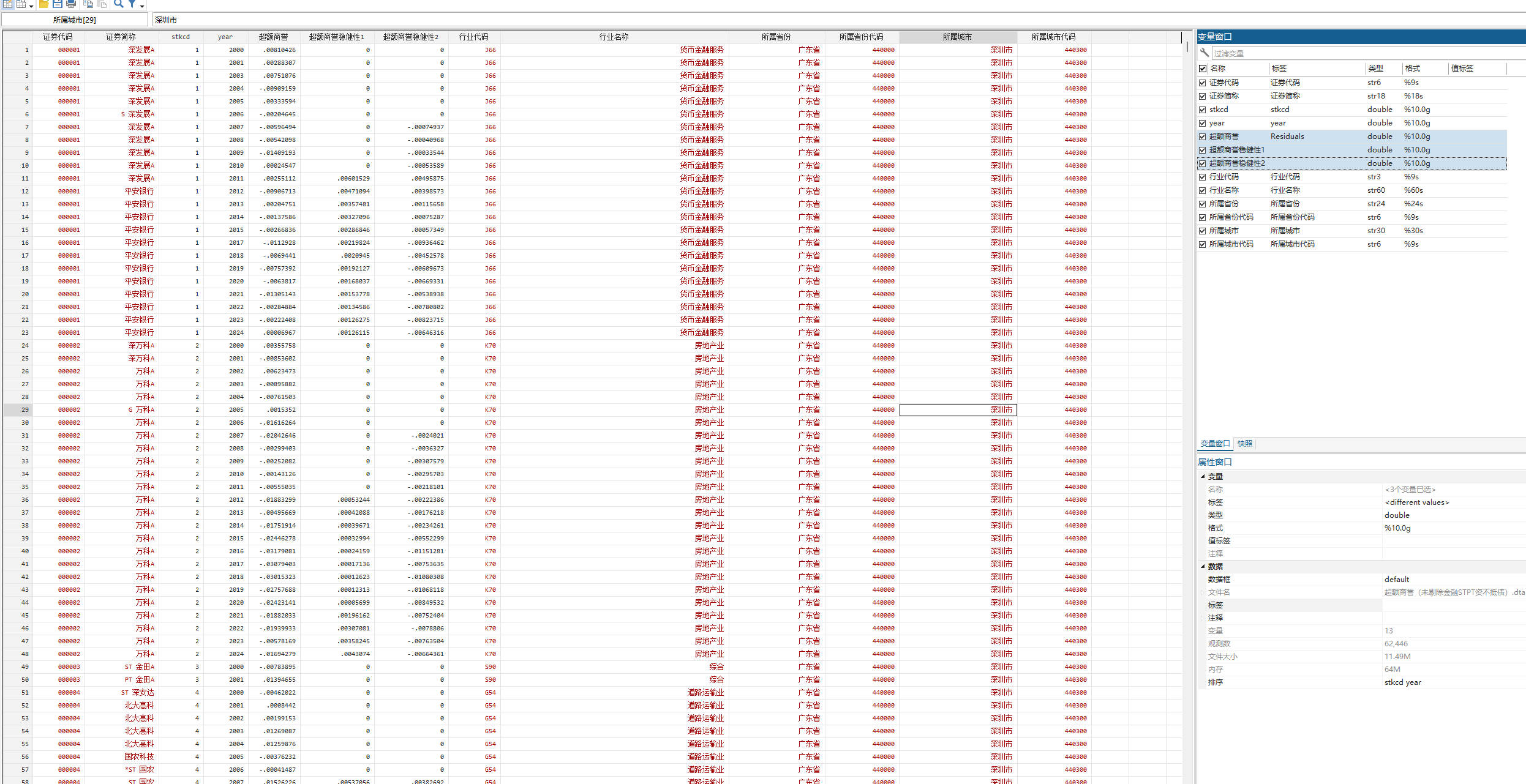 - 行业参照证监会2012年行业分类标准,制造业用二级行业分类,其他用一级分类来计算并对连续型变量进行了1%和99%分位数的缩尾处理
