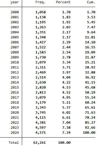 - 文件格式:Dta格式(使用Stata打开)、Xlsx格式(使用Excel打开)