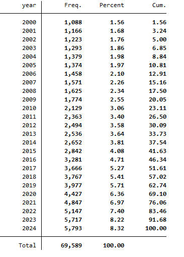 - 文件格式:Dta格式(使用Stata打开)、Xlsx格式(使用Excel打开)