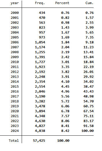 - 文件格式:Dta格式(使用Stata打开)、Xlsx格式(使用Excel打开)