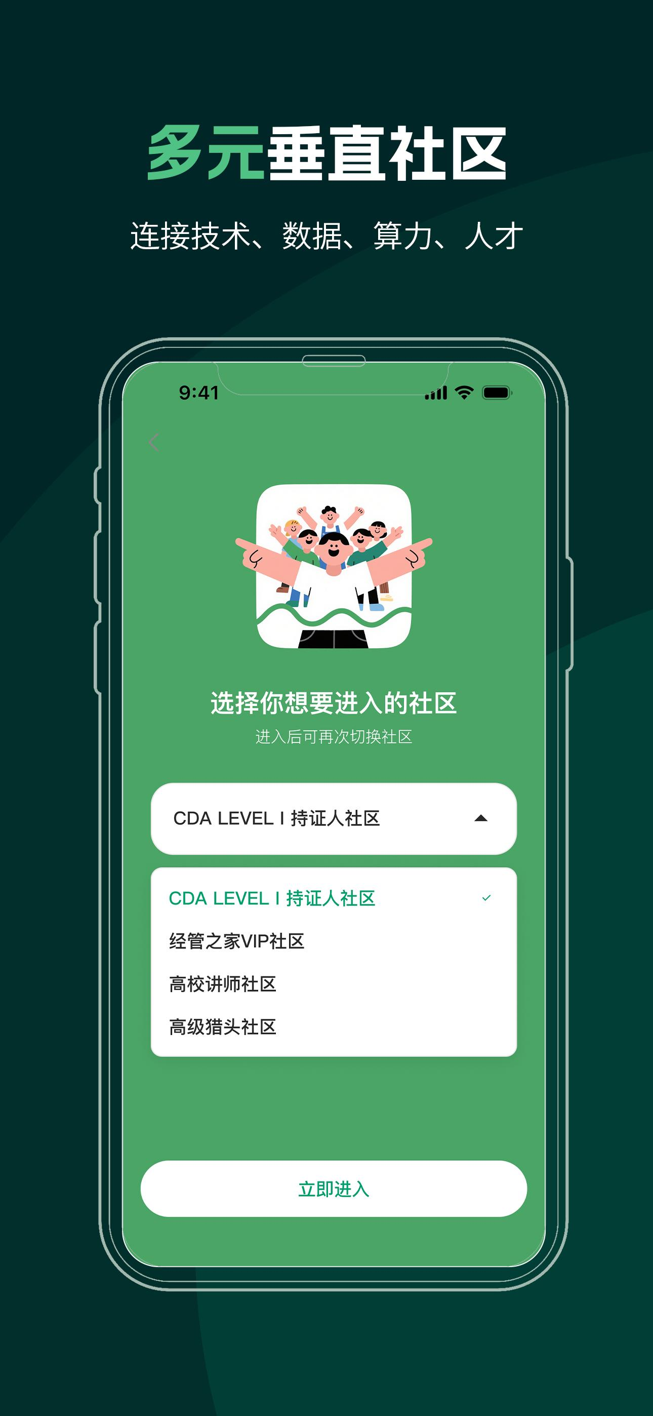 「多元垂直社区」可开放式交叉创建或加入社区,打破行业壁垒,创建加入兴趣社区。跨行业技术协作,促进AI、数据科学、金融、医疗、教育等领域的跨界碰撞,连接技术、数据、算力、人才,加速创意落地。
