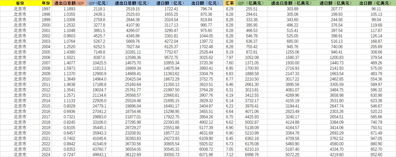 计算公式:对外开放指数(外贸依存度)=本省当期进出口总额/本省当期GDP总额