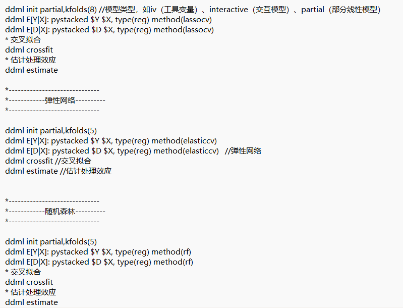 双重机器学习(DML)stata代码:七种算法模型[color=rgba(0, 0, 0, 0.9)]【数据说明】双重机器学习(Double Machine Learning, DML)是一种结合了机器学习和因果推断的统计方法,它在经济管理领域有着广泛的应用。这种方法特别适用于处理高维数据和复杂的非线性关系,同时能够提供无偏的参数估计。在经济管理领域,DML 可以用于估计政策效果、市场反应、消费者行为等。例如,研究者可以使用 DML 来评估某一政策变化对经济指标的影响,或者分析市场干预措施对消费者购买行为的改变。DML 通过正交化技术解决了传统机器学习在因果推断中的偏差问题,使得研究者能够在控制混淆变量的同时,准确地估计出核心参数。本数据以一个双重机器学习的案例展开,展示了双重机器学习的使用方法。