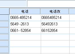 想咨询下各位,用SPSS怎么把电话号码那一列中的“-”和“空格”直接消去,或者有什么代码可以用的吗
