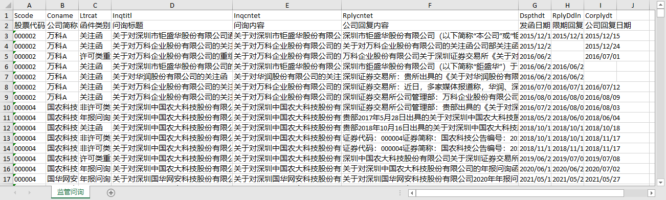 上市公司监管问询数据2014-2024关注函回复详细内容文本许可类并购重组半年报违法违规定期报告等