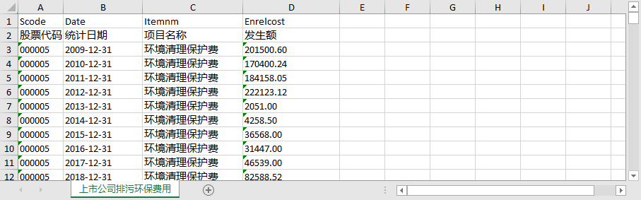 2011年-2018年A股上市公司环保投资(环保支出)数据