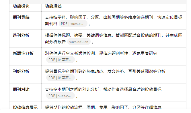 功能全面:涵盖选题、投稿、评估、分析全流程;