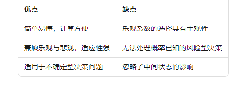 乐观系数决策法(又称赫维茨决策准则,Hurwitz Criterion)是一种在不确定型决策中常用的方法,适用于决策者对未来状态无法确定概率,但又希望在乐观与悲观之间取得平衡的情境。