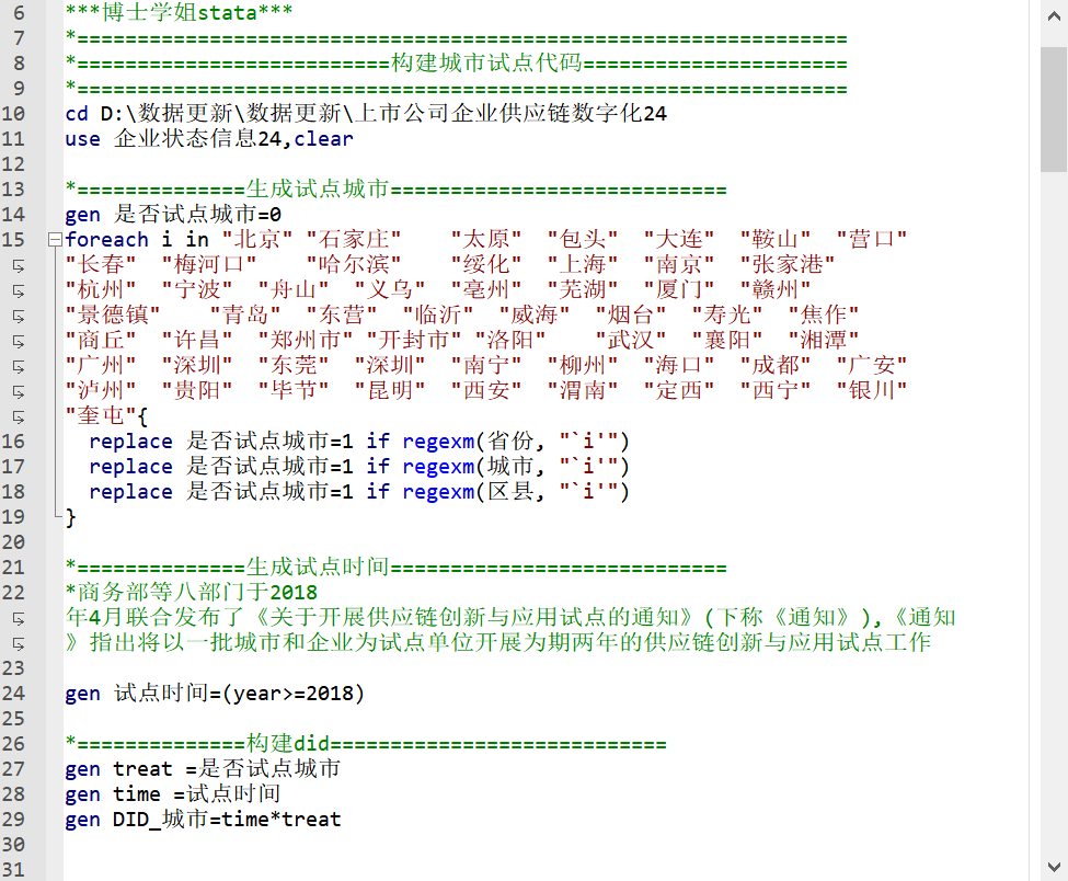 - Treat × Time 为交互项,刻画了供应链创新与应用试点企业与非试点企业在数字化前后的差异