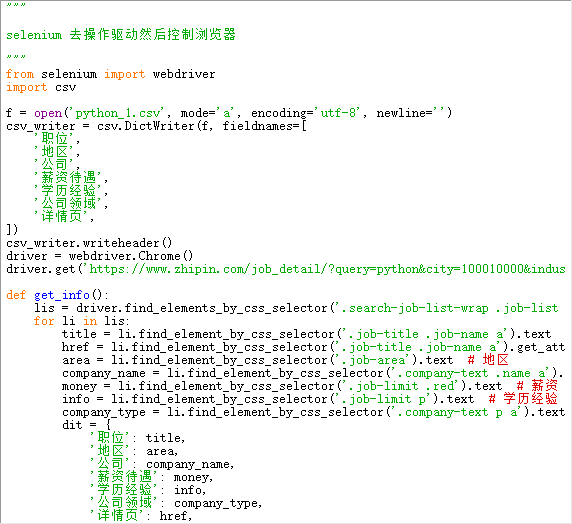 使用selenium 去操作驱动,然后控制浏览器,爬取网站招聘信息