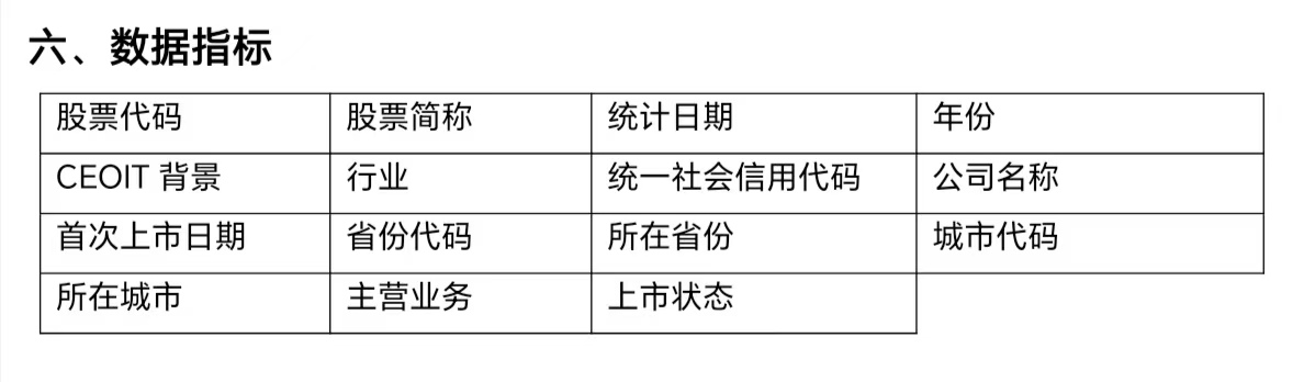 股票代码、股票简称、统计日期、年份、CEOIT背景、行业、统一社会信用代码、公司名称、首次上市日期、省份代码、所在省份、城市代码、所在城市、主营业务、上市状态、参考文献