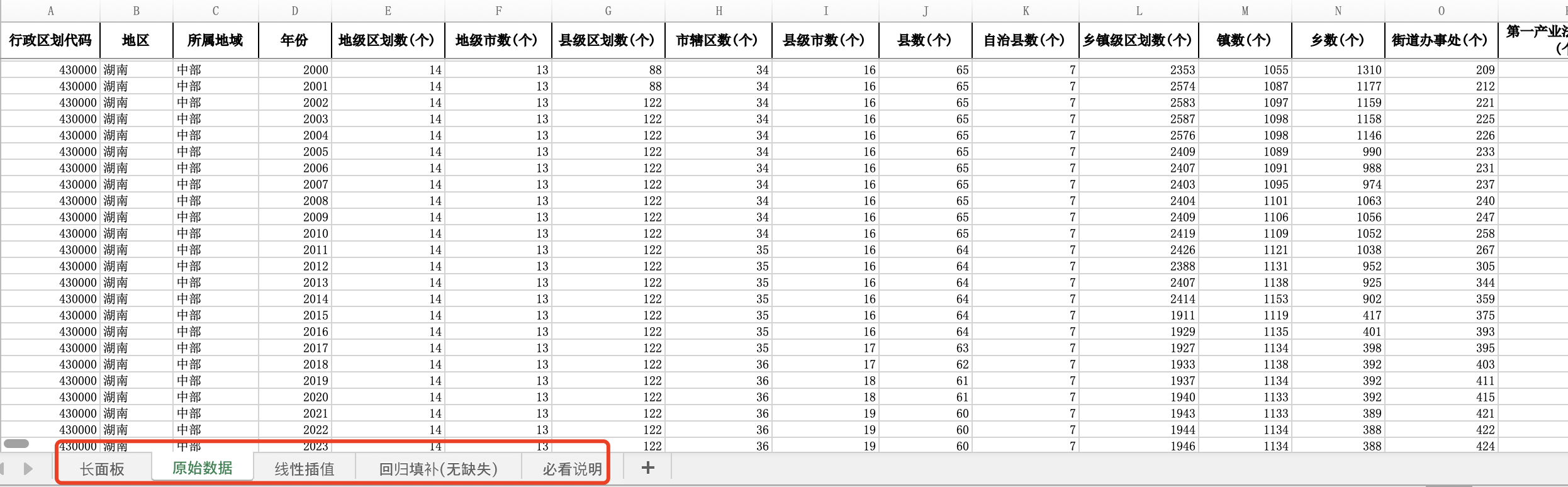 - 数据格式 :Excel 面板数据(含原始数据/插值填补/回归填补(无缺失))