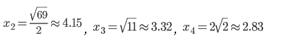 解之得 x 1 =2√6≈4.90 。也就是第一场战斗结束后后金军的剩余兵力约4.9万人。我们继续通过下面的方程求解 x 2 , x 3 , x 4 。