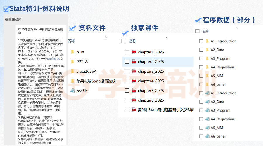 5. 免费学习资料:学员可以免费获取课程讲义、数据文件、do文件以及参考文献的PDF版本;
