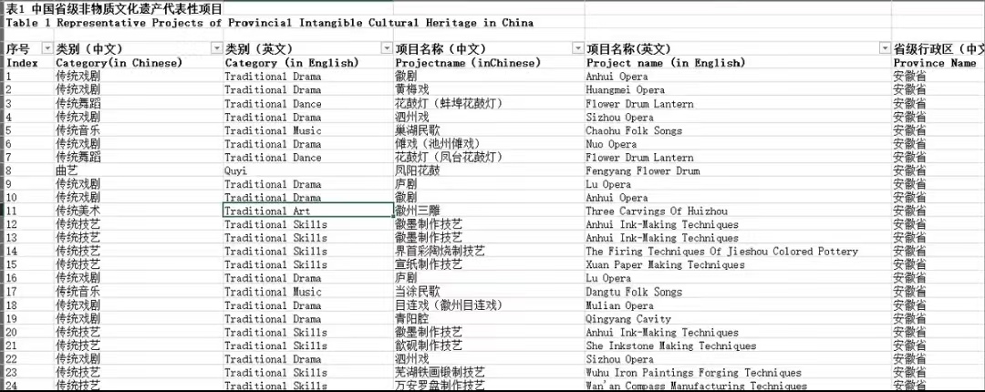 省级非遗项目信息表(Provincial_ICH_Projects)
