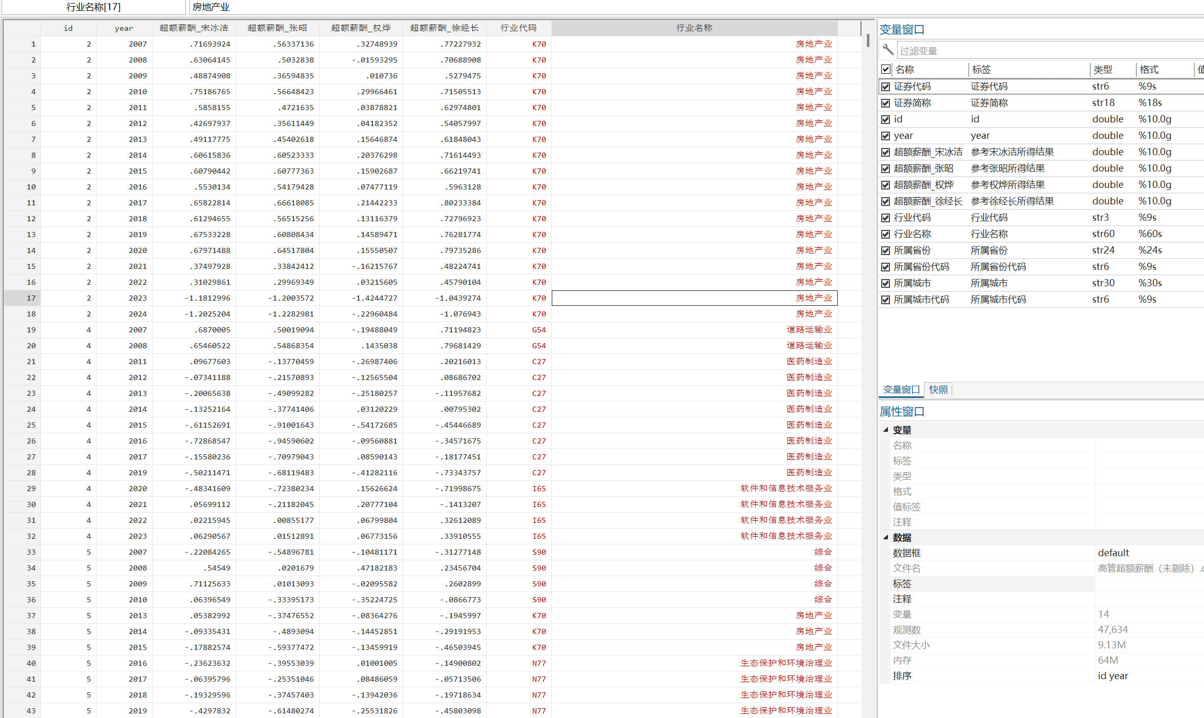 - 两种版本结果:全样本版本、剔除金融STPT资不抵债版本,已剔除缺失值(注意:由于超额薪酬为样本回归拟合的结果,所以当样本改变时需要进行重新计算,