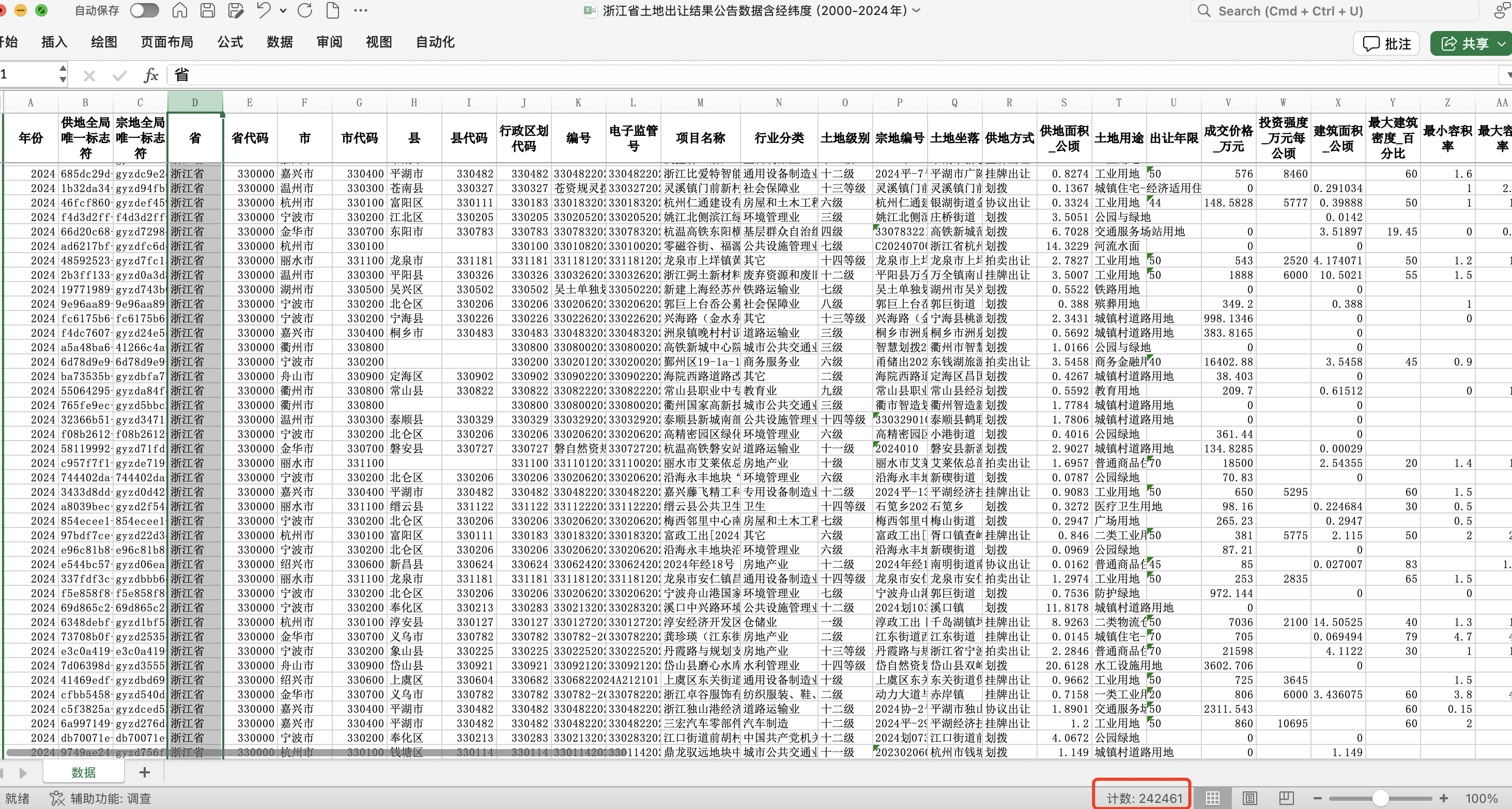 浙江省土地出让结果公告浙江土地出让省市区县数据出让方式年限土地用途(2000-2024年,含经纬度)