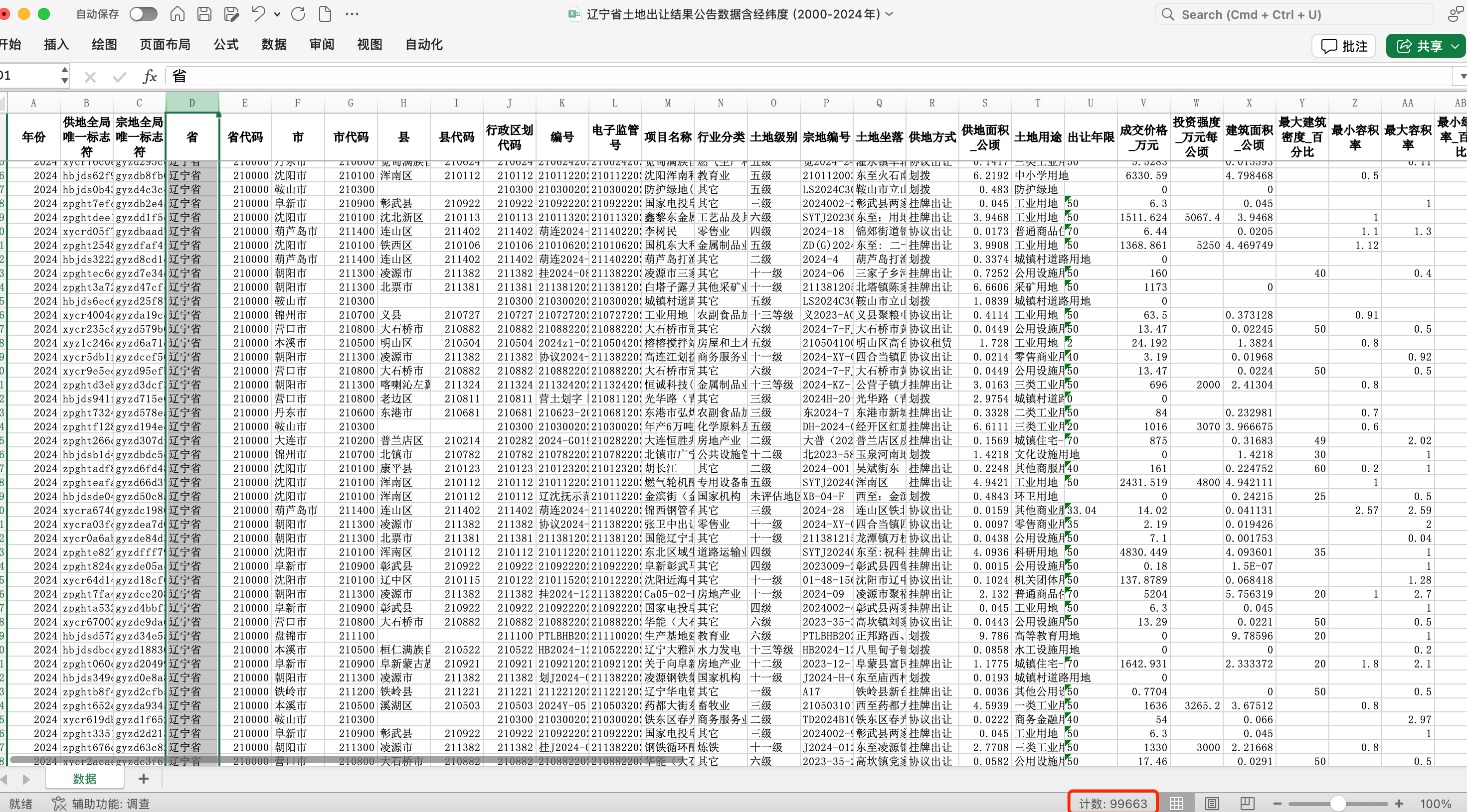 辽宁省土地出让结果公告数据辽宁省土地出让地块交易明细(2000-2024年,含经纬度)